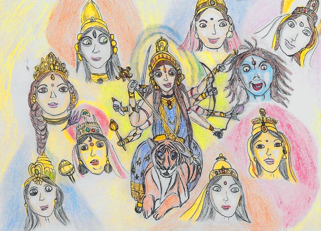Over this holy week each day is dedicated to one of her nine avatars. The nine forms of Maa Durga are: