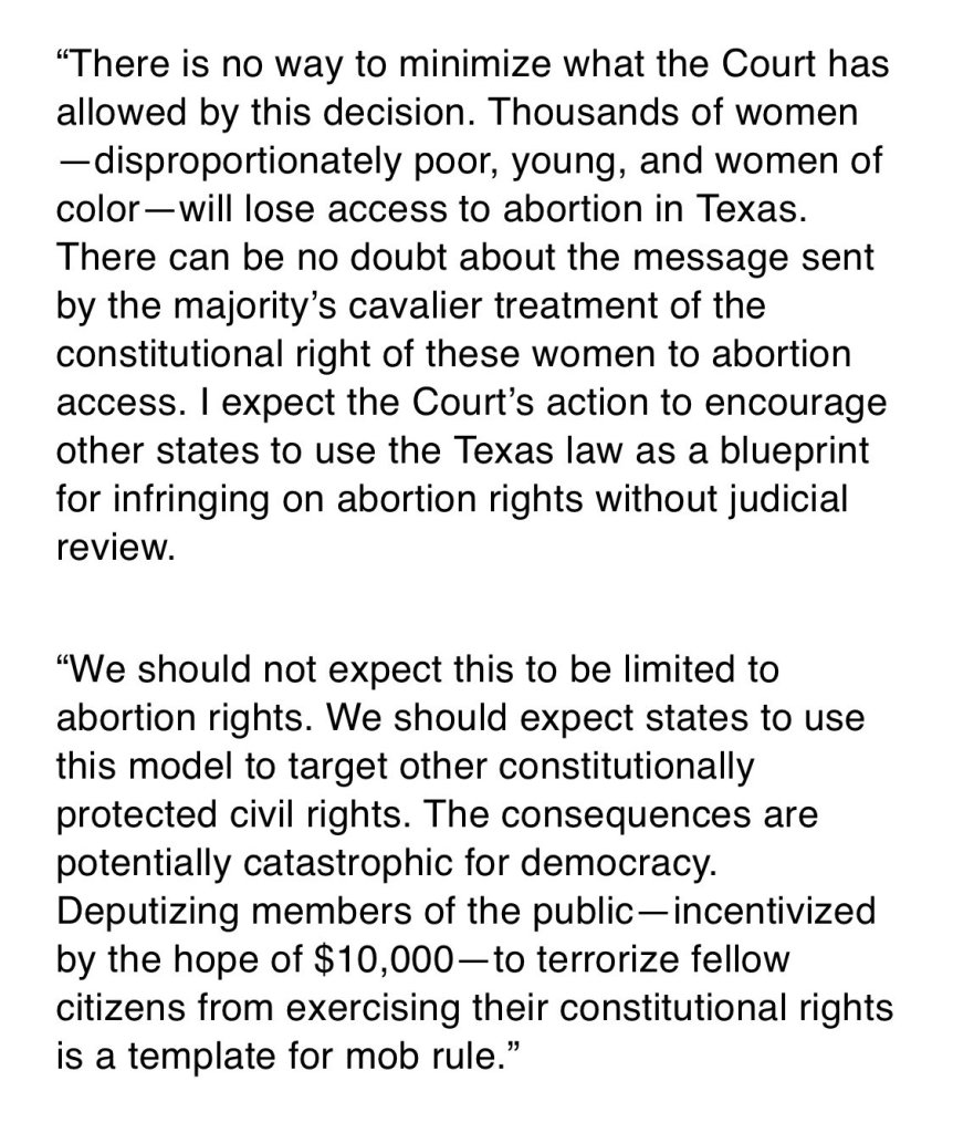 But I value LIFE, which includes humans, not matter how dense they are. Nobody in the GOP or the religious right/wrong seem to realize a lot of young women are going to die because of this decision–or NON-decision–by the conservative justices on the Supreme Court. Maybe they don’t care. They were certainly fine with Donald Trump committing mass murder last year. I’ll be watching, and pushing with every other decent person, to make sure this ass-backwards law in Texas takes a dive, and to see to it that this SCOTUS does not take us back to the Dark Ages.