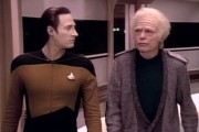 Data (Brent Spiner) remains the most appealing character. He was the polar opposite of OS’s Spock, though they both served the same function as mirrors on the human condition. Early on Data was characterized as a babbler who defines words and phrases to death, to the point where the captain, crew and even the ship’s computer cut him off. Whereas Spock kept his emotions on a tight grip and frequently expressed disdain at our emotionalism, Data was always reaching, often coming closer to humanity than most of the humans he interacted with. When Tasha, in her farewell log, said he sees things with the wonder of a child, she’s not wrong.